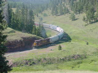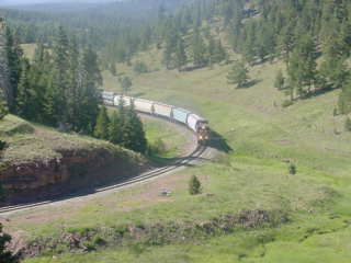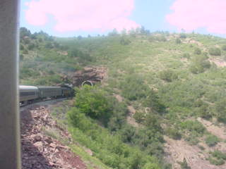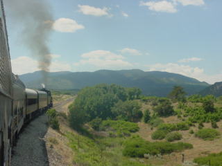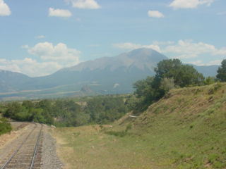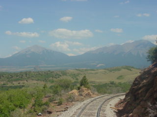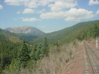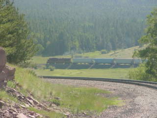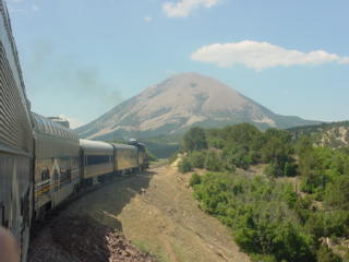Rio Grande Scenic 18 works hard with Bald Mountain in the background.