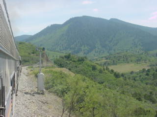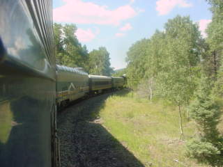 This box car has been converted to restrooms. As the train had power outlets, I reboarded and worked on the story until we departed.