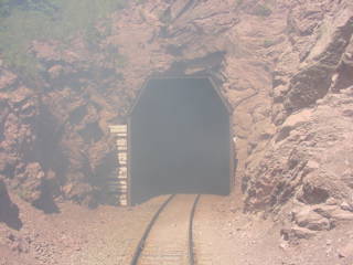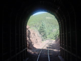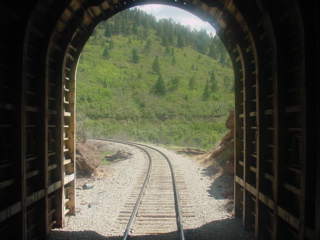 Passing through the 655 foot long Lower Tunnel at Milepost 198.6.