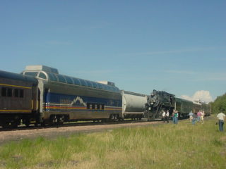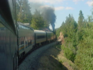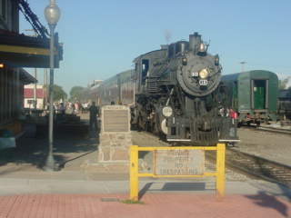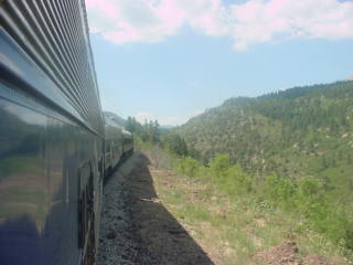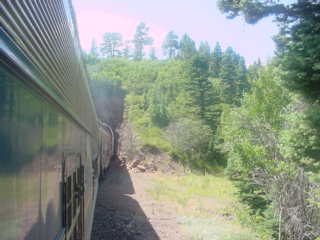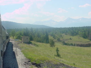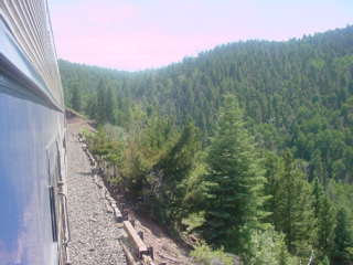 I either relaxed in the full dome of "Summit View" or was on the rear platform talking with other passengers as the train rolled the straight miles back to Alamosa. At the Rio Grande River, some joker had driven his truck out into the river and was stuck. It looked pretty funny. We arrived in Alamosa at 6:20 PM and Bob ran off to a church in hope of making part of a Mass while Chris and I waited. A special thank you to the Rio Grande Scenic Railroad for a most special trip.