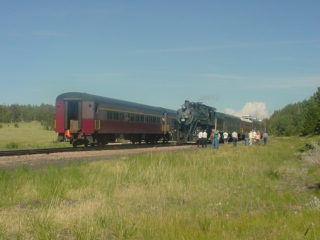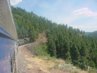 7/20/2008 The next morning we drove to Trinidad and left the rental car in the station lot then boarded the ten-minute late Southwest Chief 10. I was in the 330 car instead of the 331 as the latter had no power in the outlets and 330 did not have any working toilets. We sat at Canyoncito for almost an hour as a private car was added to Train 4 at Lamy. We arrived at Albuquerque a minute before we were supposed to leave and it was here that Chris Parker left us to fly home.