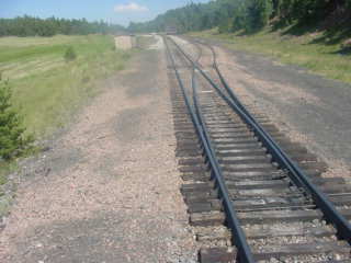 The switch was lined for our reversal into the siding to clear an eastbound train movement.