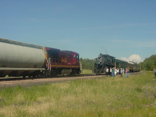 The mixed train met our waiting steam train after almost an hour's wait, but it was worth every second.