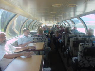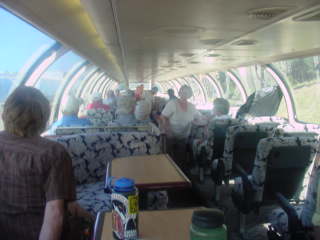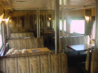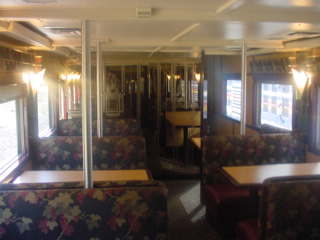 Interior of San Luis and Rio Grande full dome 551 "Sky View", ex. Westours "Kobuk:1" 1994, exx. Chicago, West Pullman and Southern Railroad, exxx. Golden Arrow Excursion Company 1983-1987, exxxx. Curtis Potter (Passenger Car Associates) in 1981, exxxxx. Auto Train 513, nee Santa Fe 551 built by Budd Company in 1954.