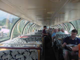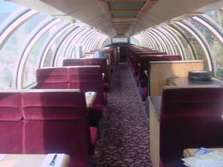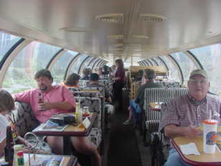 The interior of full dome 507 "Susitna". I walked out into the open car "Sunshine Falls" for the trip back, finding Chris and Bob there.