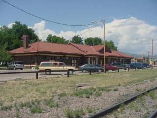 The former Canõn City Denver and Rio Grande Western station, built in 1878, is now a bank. We drove to the Royal Gorge Route station and parked then I picked up my dome class ticket for the trip through the world-famous Royal Gorge. Chris Parker and Bob Riskie had open car tickets.