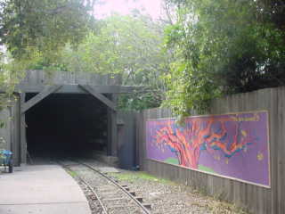 The Santa Barbara Zoo Railroad 12/7/2008This two foot gauge railroad started operations in 1968, five years after the Zoo opened. Volunteers laid the first miniature railroad track, which circled the hilltop area. The track was expanded in 1983 to its current footprint around the perimeter of the property, a result of weekend work parties during which community members cleared land, laid ties and rails and gauged the track. In order to purchase the locomotive and coaches, the Zoo secured its first and only bank loan. The train became an instant hit with Zoo goers and that loan was paid off within six months.