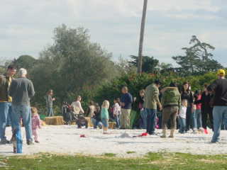 It was Snow Leopard Day at the Santa Barbara Zoo and the families were able to play in the snow that had been trucked in. I set up for the next passing of the Zoo Train.
