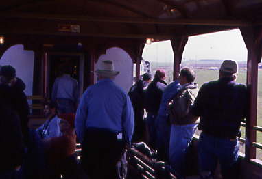 At Warnersville, we were allowed off the train while McCloud 18 was being watered, then McCloud 18 reversed the train the rest of the way out to Keystone, where the engines would run around the train. Everyone detrained and I climbed onto a loading ramp for better elevation.