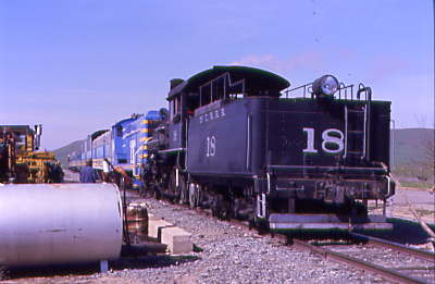 Sierra Railroad S-12 42, built by Baldwin in 1955, would also be on our train as well as McCloud Railroad 2-8-2 18 which was still down at the shops, so I walked down there and made a few new friends.