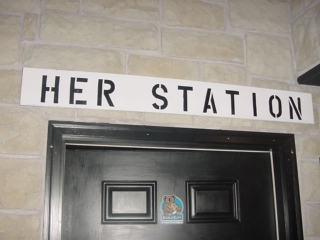 Her Station is the women's restroom sign.