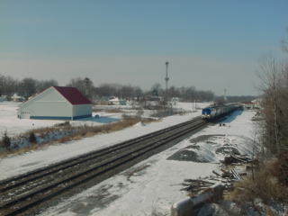 2/23/2008 The next morning I woke up tired but ready to go and met Chris Parker in the lobby and we went to the Red Rooster for breakfast where I had French Toast and sausage. Chris was going to take Tony Escarcega, Anton Lazzaro and Jonathan Ortiz for a drive out in the Amish countryside and I went to the Chris Guenzler Million Mile Lookout Point, a place I love coming back to and putting up my feet while waiting for trains to come, which they did. Four eastbound BNSF freights and one westbound with two general merchandise trains passed in front of me. I was soon joined by a father and son and later by a family with two young children.