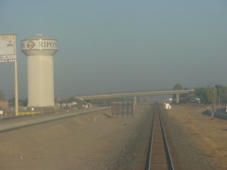 Our train was rolling at track speed through Manteca.