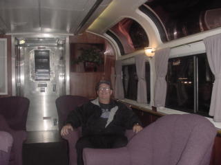 The rear of our train but unforutnately, no drumhead. I found Chris Parker and we checked to see what time the dining car opened.