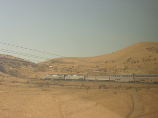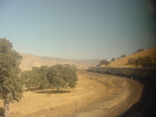 Crossing Tehachapi Creek once more as we made our way to Woodford and a meet with the northbound Coast Starlight which was waiting there for us.