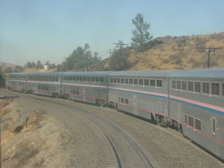 At Woodford, we passed the northbound Coast Starlight which had private cars "Silver Lariat" and "Silver Solarium" on the markers.