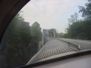 Nearing the hills that we will climb over 900 feet of elevation between Nashville and Monterey. Rob then took me back to the rear platform where we rode the most scenic portion.