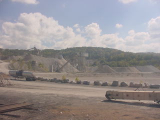 One of the Music City Star F40PH-2s peeks out from behind the new sand cars.