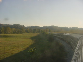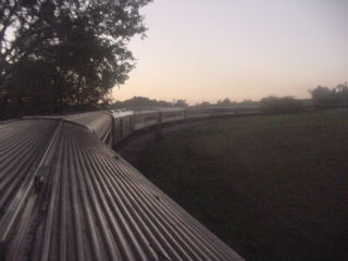 After this large curve, I put the camera away and as darkness took hold, the dome car's lights were turned off so we could see. Randy and I played star games then chatted all the way back to Nashville, where we arrived at 7:50 PM, ending a great trip by the Tennessee Central Railway Museum. Randy drove me back to the Drake Inn and I called it a night.