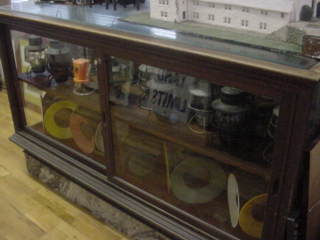 Display case housing marker lights.