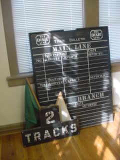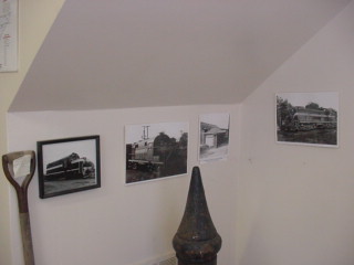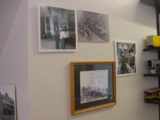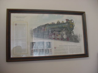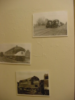 Railroad pictures on the wall.