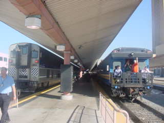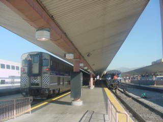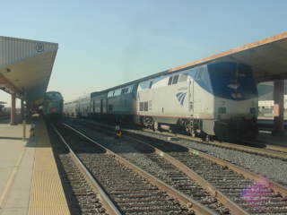 11/14/2008 I was up early with a cold so after packing, went out and bought some over-the-counter cold remedy then finished upgrading my computer before driving to the Santa Ana station and parked. After making sure that the lateness of Pacific Surfliner 763 was caused by signal problems in San Diego County, I went over to Track 1 and after an on-time Metrolink train, I waited for Amtrak to arrive.