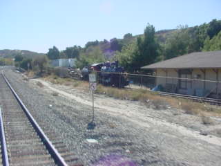 Passing the Saugas depot and Southern Pacific 2-6-0 1629 on display.