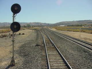 Passing the junction with the Palmdale Cutoff at Palmdale Junction.
