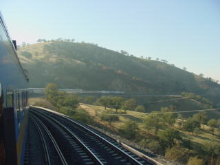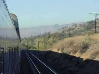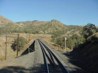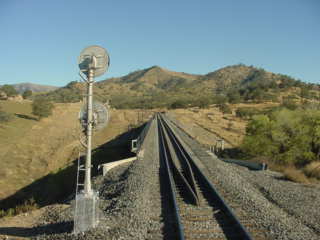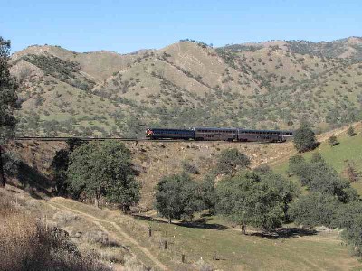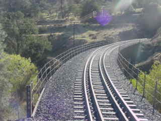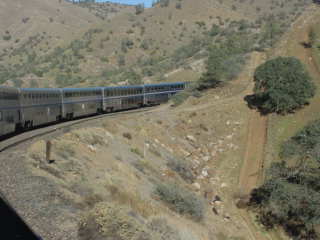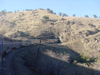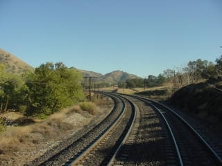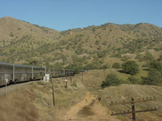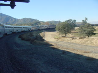 Our train was dropping down the grade towards our next crossing of Tehachapi Creek.