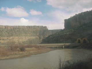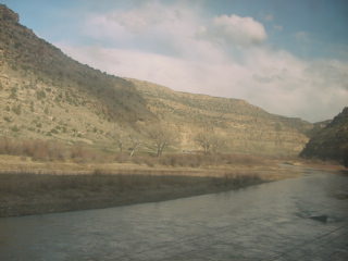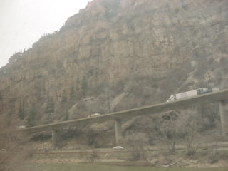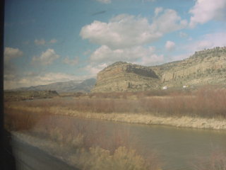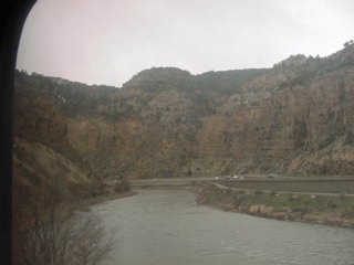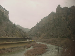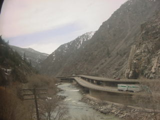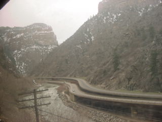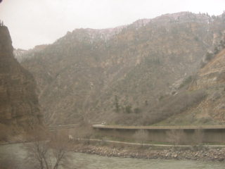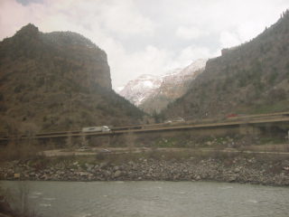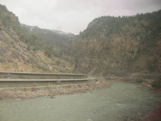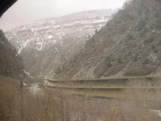 Our first view of Ruby Canyon down a stream that flows into it. The train passed through a tunnel and now we were in Ruby Canyon, my favourite canyon on the entire Amtrak system.
