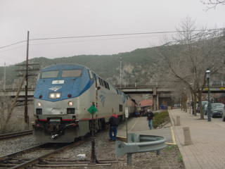 The California Zephyr at Glenwood Springs station. With plenty of luggage to be put in the baggage car as well as boxed bicycles, I had plenty of time to access the Internet, check e-mail and a few other things.
