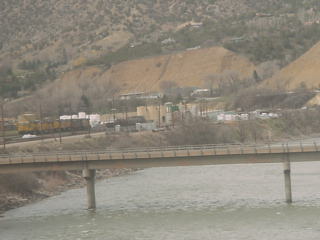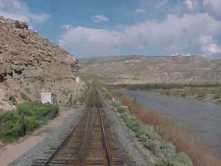 The train stopped at Grizzly siding and waited 15 minutes for the eastbound California Zephyr then resumed its westward journey through Glenwood Canyon.