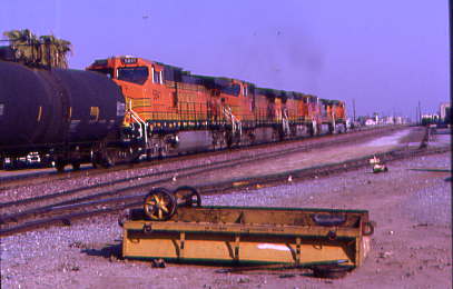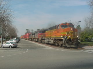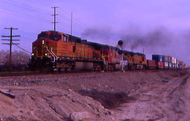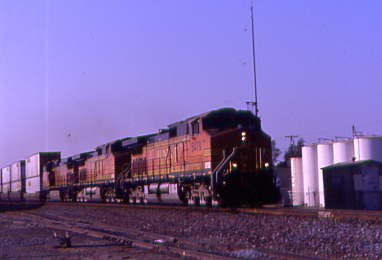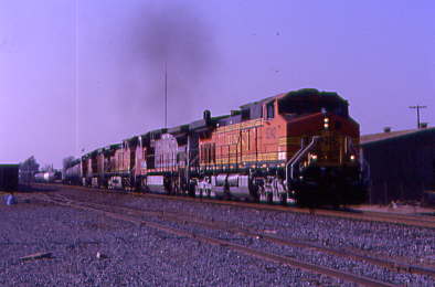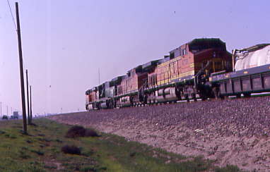The Drive North 3/7/2008We made our way out of the greater Los Angeles area by taking Interstate 5 north over the Grapevine and down into the San Joaquin Valley, stopping at Grapevine for snacks before staying on Interstate 5 then taking the road to Shafter, where we followed the BNSF line into Wasco, coming upon the rear of a BNSF freight train.