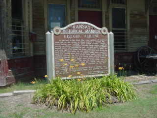 The Historical Marker in front of the former Rock Island station which the Abilene & Smoky Valley Railroad uses.