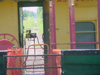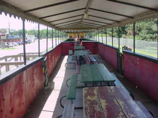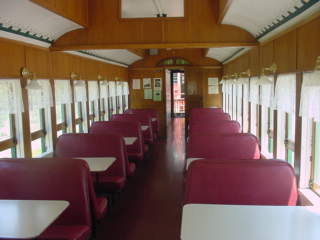 Interior of open air car 610851. Our tickets were punched and Bob and I were this afternoon's only passengers.