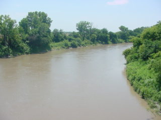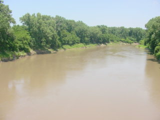 We traversed another trestle across the overflow of the Smoky Hill River with a footbridge down below.