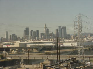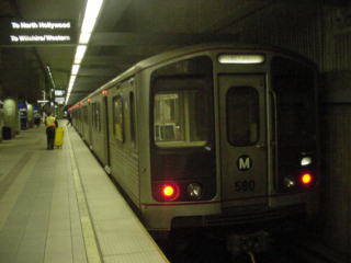 On the way I saw this movie prop of a locomotive. From the Gold Line, we transferred to the Red Line and took the first train to 7th and Flower, where we detrained and walked seven blocks to the Nokia Theater.