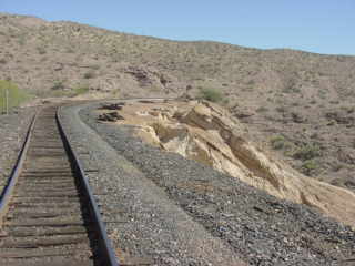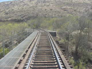 Owl Canyon bridge at Milepost 1207.3. In 1915, the track was moved through there onto a new grade.