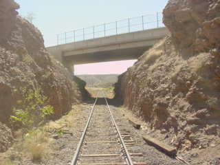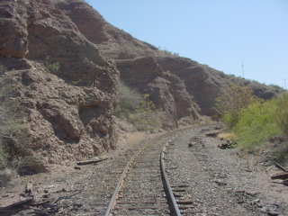 Miry Junction, the junction with the mine railroad. In 1910, the Shannon-Arizona Railway constructed a narrow gauge railroad from Clifton to Metcalf and the Shannon Mines. The line was abandoned in 1919. Later, a rail line known as the Morenci Industrial Railway was built westward to the new Morenci Open Pit Mine and related facilities, using the first mile of the old SARY grade. The Morenci Mine began operations in 1872 as an underground mine and moved to open-pit mining in 1937. As part of the conversion, the open-pit mine was made operational with rail haulage. Trucks have since replaced the trains for rock haulage.