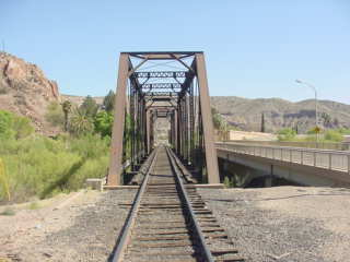 The 305 foot steel through truss bridge across the San Francisco River at Milepost 1215.9.