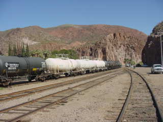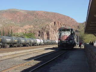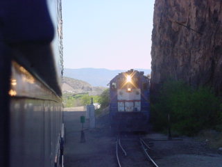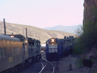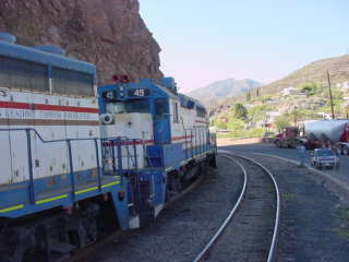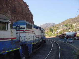 Freeport-McMoRan Industrial Railroad took over Phelps Dodge operations in 2007 and on this day, was taking its train into Clifton Yard, then ran around the train to head light back to the mine. Once it had cleared, we pulled up past the switch then reversed into the station where we picked up the rest of our group then started back for Duncan.