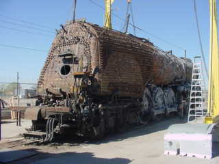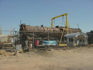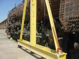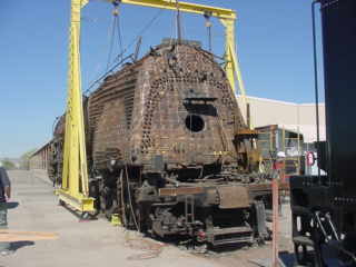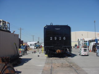 Santa Fe 4-8-4 2926 Restoration Project in AlbuquerqueWe walked in and met the crew who provided hard hats for our visit. They told us the goal of the project is to have the engine ready for New Mexico's 100th Birthday on January 6, 2012. It was taken out of Coronado Park in Albuquerque in 1999 and has been undergoing restoration ever since. The volunteers had completed the tender and recently finished a drop pit.