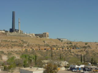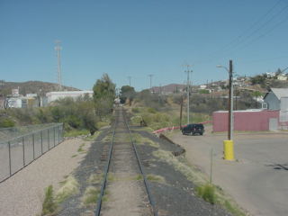 The view looking back to the tracks that the Inspiration Consolidated Copper Company Industrial Railroad uses to interchange with the Arizona Eastern here at Transfer Yard.