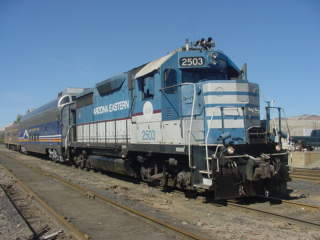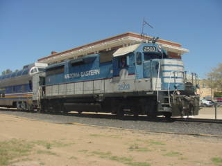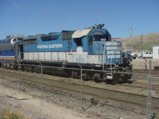Arizona Eastern GP35 2503, ex. Union Pacific 795 nee Western Pacific 3017 built by Electro-Motive Division in 1965. Our train consisted of AZER 2503, former Santa Fe full dome 510 and former Illinois Central club-lounge- observation 3378 "Calumet Club". I then boarded and picked a chair in the "Calumet Club".
