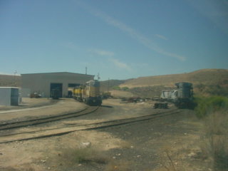 The Railroad's shop with the steam engine which had a slight problem and was now waiting for the afternoon turns, while one of the diesels, a former Union Pacific engine in that paint, did the honors on the morning excursion trains.