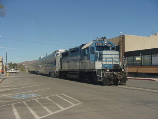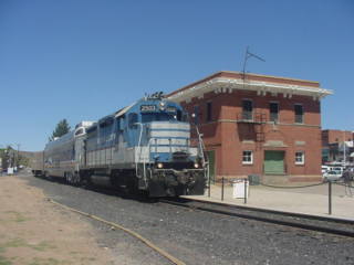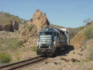 Globe Branch HistoryThe line was chartered to be built by the Gila Valley, Globe and Northern Railway on January 5th, 1895. The line was opened to Fort Thomas on May 1, 1895. With more major construction ahead slowing the building of the railroad, it reached Globe on December 1, 1898 and Miami in late 1899. Before it had reached Globe though, the line was acquired by the Arizona Eastern. It was the leased to the Southern Pacific in 1905 and then fully merged into the SP in 1924. In 1988, Kyle Railroad bought the line from the Southern Pacific. Kyle Railroad was then acquired by first the Lake States which then was acquired by Rail America. They sold off the Globe to Bowie line to the Permian Basin Railway on December 9, 2004. Beginning on December 13, 2008, excursion trains started, first with diesels then a steam engine from the Globe station to the Apache Gold Casino and Golf Resort.