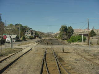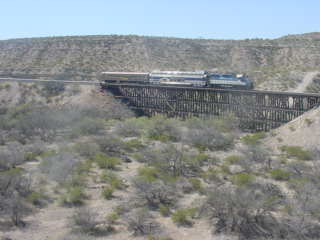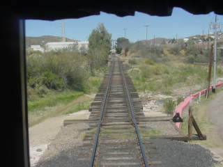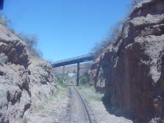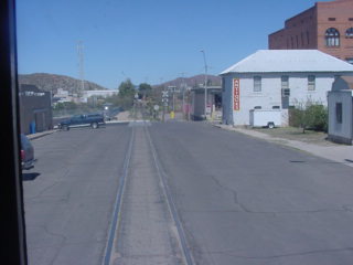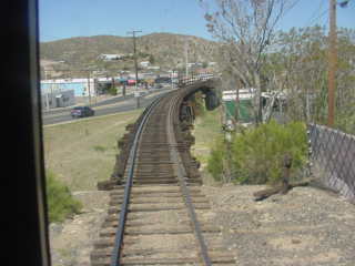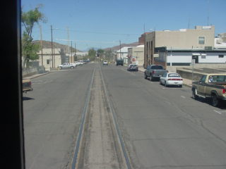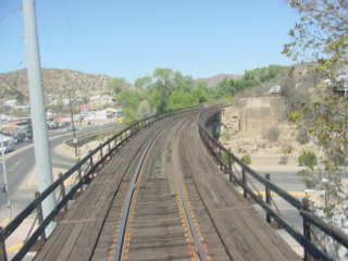 Crossing the wooden trestle bridge over Pinal Creek before we entered Globe and started our street-running down Pine Street.
