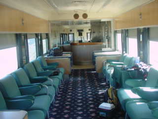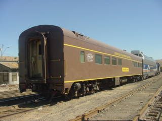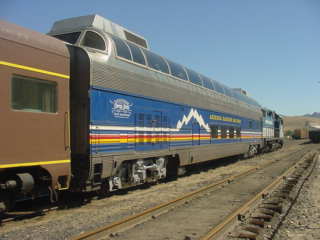 San Luis and Rio Grande full dome 510 "Sunset View", ex. Westours "Chulitna", exx. New York, Susquehanna and Western, exxx. Auto Train 522, nee Santa Fe 510 built by Budd Company in 1954.