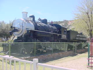 Southern Pacific 2-6-0 1774 built by Burnham Williams in 1902. 1774 spent some time on the Southern Pacific subsidiary, the Arizona Eastern Railway between 1910 and 1924. The AZER ran from Miami, Arizona through Globe to an interchange with the SP at Bowie. After the SP absorbed the AZER in 1924, the locomotive was assigned to main line freight in Arizona and California. During World War II, it also hauled troop trains to military bases. After the war, it was assigned to the Miami-Bowie line for light passenger trains. 1774 was finally retired in 1956 having accumulated over three million miles in service in its fifty-five year operating life. The locomotive was presented to the City of Globe by the Southern Pacific on November 2nd, 1956 when it was run on a spur from the mainline to its current location in Veterans Memorial Park.
