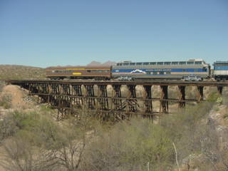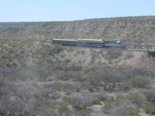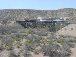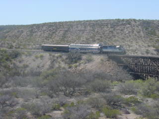 Once we all were off and in our cars, our train still blocked the only grade crossing in town and before he could move out of the way, a Union Pacific westbound freight blasted through Bowie. Our train moved just before the freight had cleared and we drove back to Safford for the night, stopping at Arby's there for me and at McDonald's for Randy and Marie. I finished the story of the trip over here then called it a night.